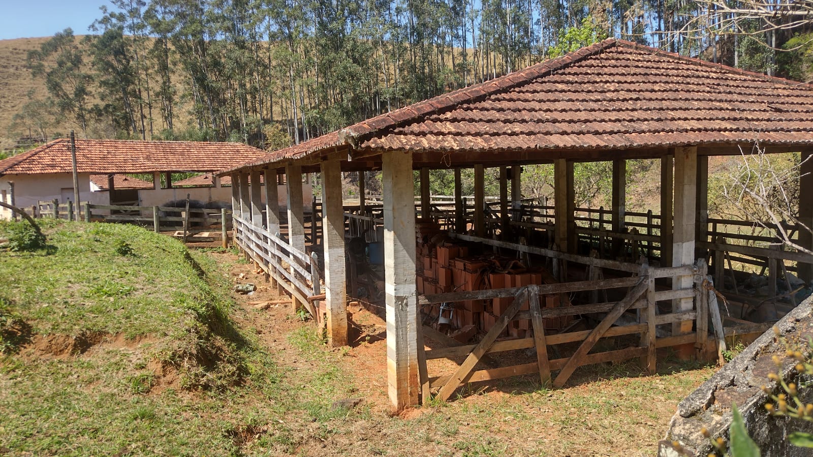 Bem feitorias:pomar, várias fruteiras, curral, com bret, cocheira pra 36 vacas, a fazenda é dividida em muitos piquetes, nascentes, três fios que cortam a fazenda, lagos ,6 cachoeiras, energia elétrica