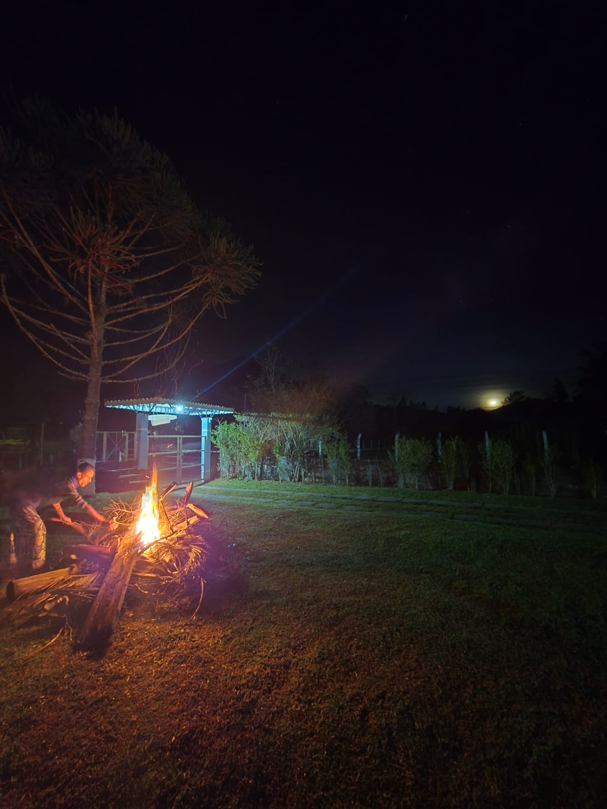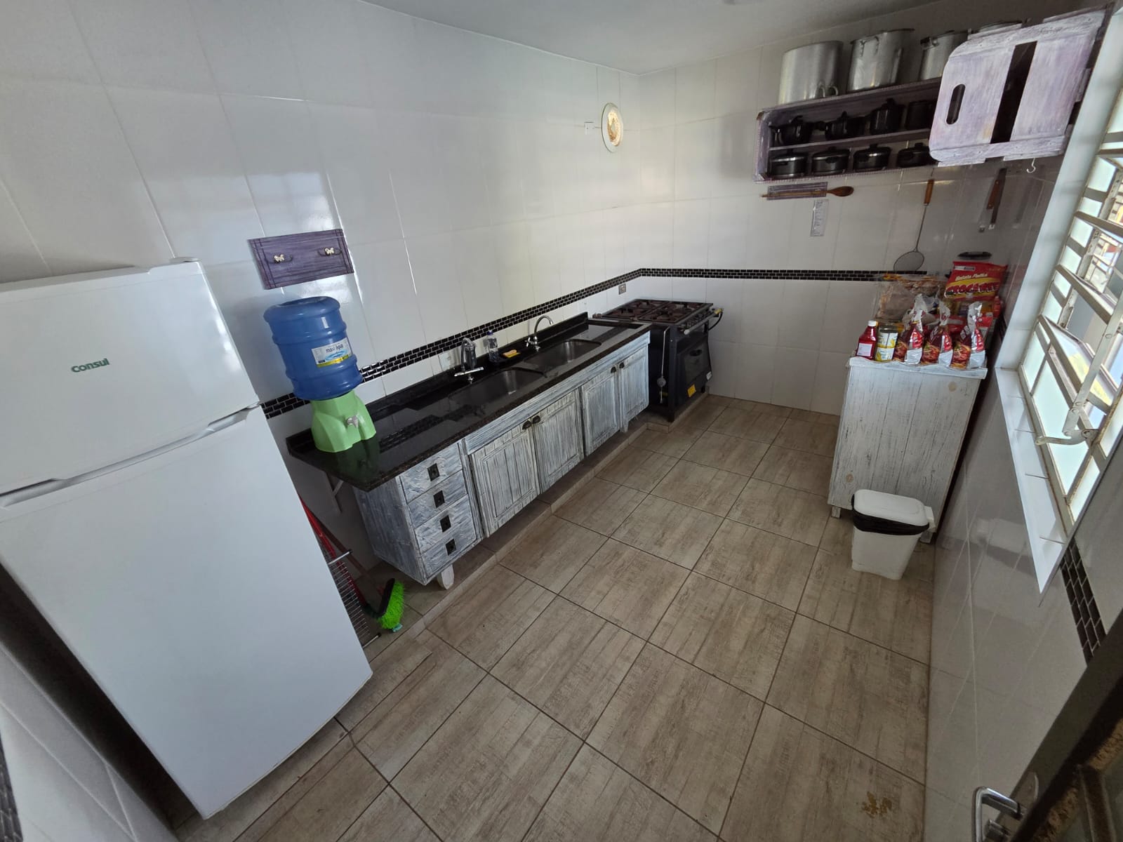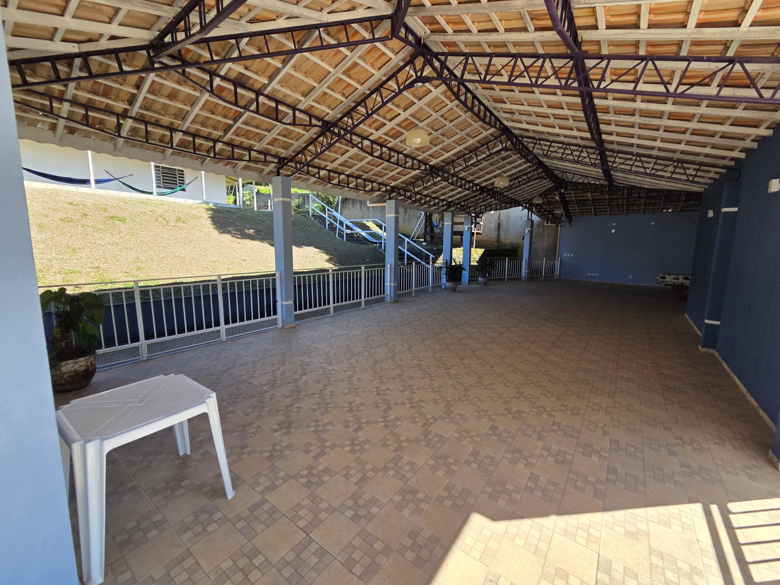 - amplo salão com capacidade de distribuição de mesas para 80 pessoas, iluminação superior e lateral em lâmpadas de LED; churrasqueira, fogão de lenha (forno embutido), pia com gabinete, bancadas e prateleiras.